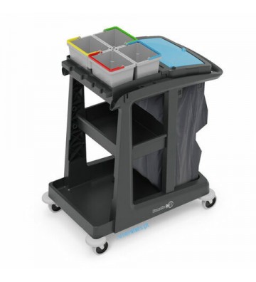 Carrinho de limpeza ECO-Matic EM3 da Numatic para uma higienização dos espaços mais eficiente. Personalizável consoante as necessidades de limpeza.