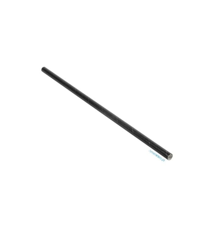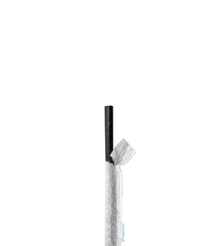 Palhinhas de papel retas na cor preta e embaladas em branco.