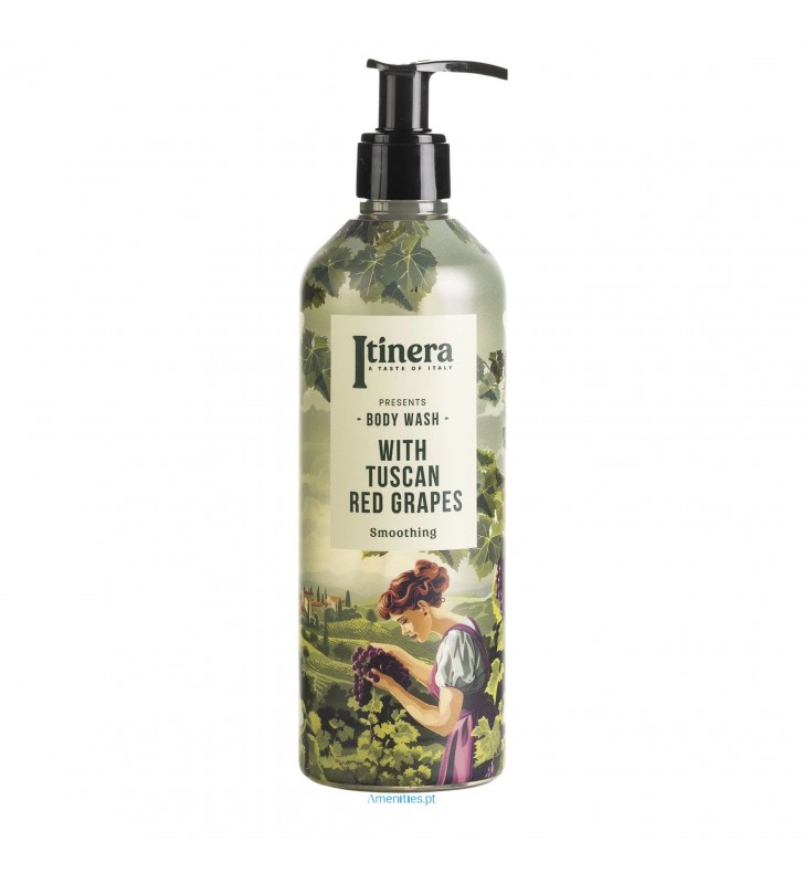 Gel de banho Itinera enriquecido com uva vermelha da Toscana. Limpa suavemente, deixando a pele revitalizada e perfumada com um aroma envolvente. Ideal para hotéis e alojamentos premium que valorizam amenities de alta qualidade.