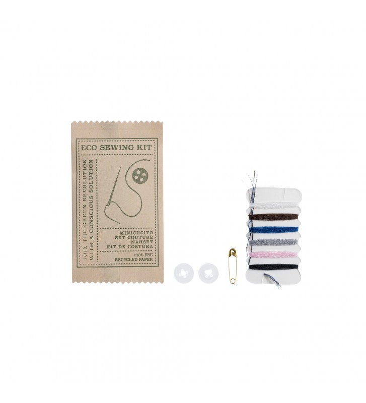 Composto por linhas de algodão de várias cores e uma agulha resistente, este kit é a solução perfeita para pequenos arranjos de última hora. A estética natural e minimalista da linha Eco Elements adapta-se perfeitamente a Hotéis de Charme, Unidades de Turismo Rural e Hotéis de Luxo em Portugal que procuram alinhar o seu serviço de cortesia com os mais altos padrões de preservação ambiental.