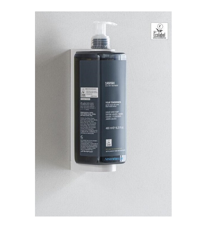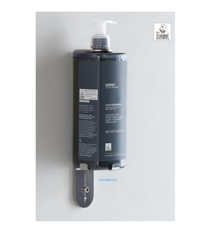 O sabonete líquido da Anyah é indicado para quem procura produtos mais sustentáveis. A garrafa é feita de plástico 100% reciclado e os ingredientes utilizados na sua composição tem certificado Ecolabel. Além disso, o extrato de urtiga-branca tem propriedades hidratantes que deixam a pele extremamente suave. Aconselhamos o uso dos dispensadores de parede para o sabonete líquido da Anyah. Ao estar fixado na parede torna o seu uso mais fácil e prático.